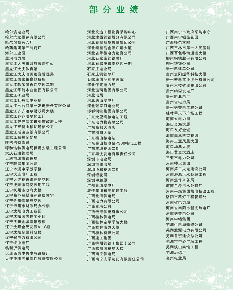 集團(tuán)通過了IS09001質(zhì)黽管理體系認(rèn)證、IS014001環(huán)境管理標(biāo)準(zhǔn)體系認(rèn)證,同時(shí)集團(tuán)系列產(chǎn)品均獲國家工業(yè)產(chǎn)品生產(chǎn)許可證,國家強(qiáng)制性CCC認(rèn)證,礦用產(chǎn)品均通過國家安檢局MA煤安標(biāo)志認(rèn)證,船用產(chǎn)品均通過...